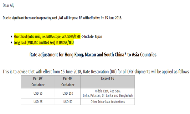 什么是 RR : Rate Restoraton Surcharge 費率附加費
